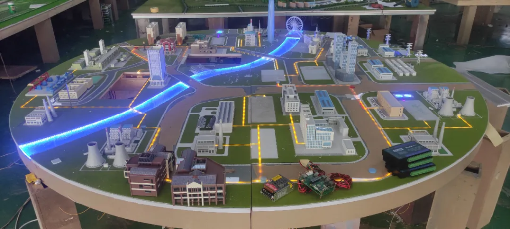 照明根据参观者所处位置自动化调节亮度,沙盘区与视频内容介绍同步联动,使观众更深刻的理解天津热电公司的系统结构,形成智能化导览的体验。
